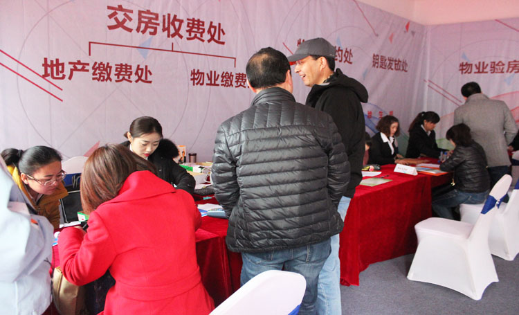 在等待区和业务办理区,现场有工作人员悉心准备的交房流程导示图,详尽的说明了交房工作的整个流程。同时,工作人员的耐心引导和悉心解说让业主对整个交房工作流程有全面的了解。