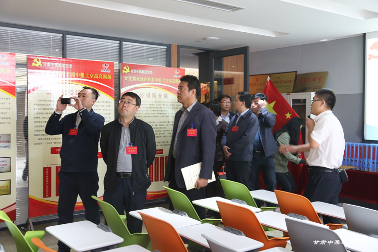 2017年9月28日上午,全省非公经济党建工作现场观摩会在中集理想国际写字楼召开,来自全省各地、市(州)、县(区)组织部部长、全省各地、市(州)、县(区)非公党委负责同志共计50余人莅临甘肃中集集团进行现场观摩。中共甘肃省委组织部副地级组织员周 密带团参加现场观摩,中共兰州市委组织部副部长宋书明、安宁区区委书记王 方、安宁区区委常委、区委组织部部长贾向红、安宁区非公党委副书记何健兴等领导陪同参加观摩,集团公司党委书记、董事长周启涛携集团公司党委委员一并观摩,党委办公室主任魏建峰代表集团公司党委向全体观摩团成员介绍了集团公司党委开展党建工作的主要做法和取得的良好成效。