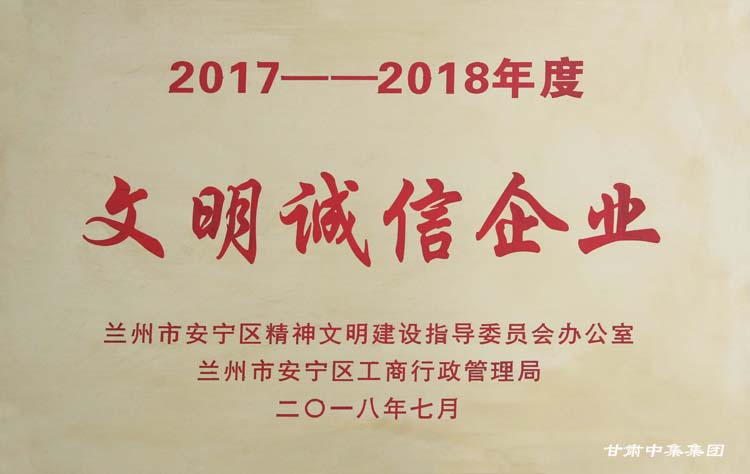 2018年7月20日,安宁区举行2017-2018年度全区“文明诚信企业、文明诚信个体工商户”表彰大会。会上,甘肃中集房地产开发有限公司荣获安宁区“文明诚信企业”荣誉称号。