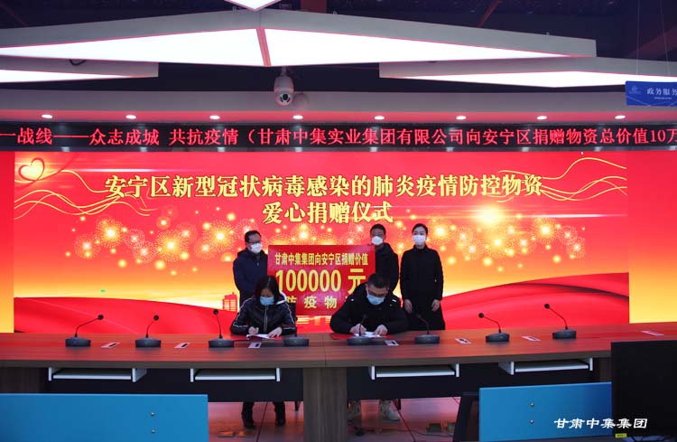2020年2月7日上午,受甘肃中集集团党委书记、董事长周启涛委托,甘肃中集集团党委副书记董广科、党委委员魏建峰一行前往兰州市安宁区人民政府向安宁区新型冠状病毒感染的肺炎疫情联防联控工作领导小组捐赠10万元防疫物资,为当前疫情联防联控、群防群控工作贡献力量。