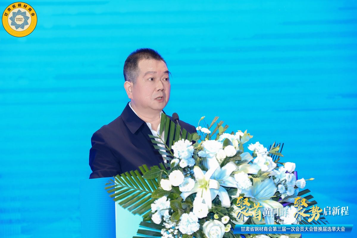 甘肃省委统战部副部长、省工商联党组书记刘全平首先对甘肃省钢材商会换届选举大会的成功举行和周启涛当选新一届会长表示祝贺。刘全平强调,要认真贯彻落实习近平总书记在民营企业座谈会上的讲话精神,要全面、辩证、长远的看待经济形势,把握大好机遇,坚定发展信心。他对商会下一步发展提出四点希望:一要坚定政治方向,强化党建引领,培育可信赖的企业家队伍;二要深化服务平台建设,搭建政企沟通桥梁,构建信息共享、融资对接等多元服务体系;三要推进规范化管理,按照"四好"商会标准打造高效团队,建设政企社多方认可的标杆组织;四要勇担社会责任,引导会员企业投身公益事业,在共同富裕实践中展现新时代企业家担当,他还表示,省工商联将一如既往为商会和企业家搭建更广阔的发展平台,携手共绘甘肃省民营经济高质量发展的壮美新画卷。