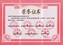 图6:集团登记证书 图7:甘肃省私营企业100强