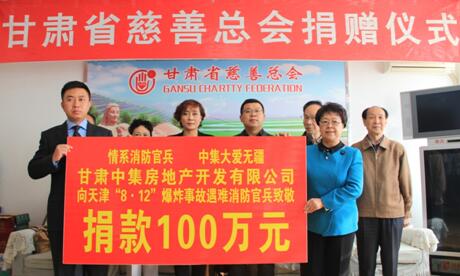 在企业经济发展的同时,主动肩负起社会责任,积极参与各项社会公益活动,努力回馈社会。公司成立以来,累计参与社会公益慈善事业逾1.4亿元,捐助项目涉及文化、教育、扶贫、助残、医疗、体育、自然灾害救援等诸多领域。仅在扶持教育一项,甘肃中集地产多年来通过甘肃省慈善总会等多家慈善机构,通过不同形式向兰州市榆中县、兰州市七里河区、兰州市安宁区多家学校开展了形式多样的资助,通过资助,真正减轻了部分困难家庭学生的经济负担,让他们能够专心学习而没有后顾之忧,各项慈善活动的开展,获得了各级政府部门及广大社会民众的高度认可。